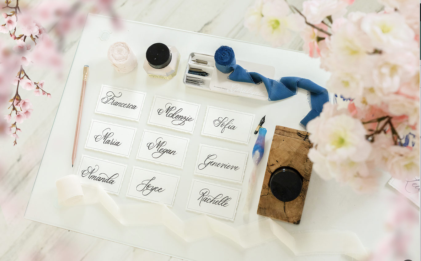Geralyn is a live event artist specializing in calligraphy and engraving based in Northern Virginia servicing the Washington DC Metro area. She has a passion for crafting beautiful and personalized gifts that capture meaningful moments to create a lasting impression.Geralyn specializes in elegant calligraphy and engraving for on-site brand activations, events, and in-studio commissions.